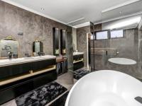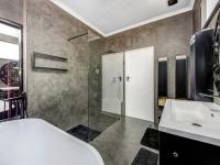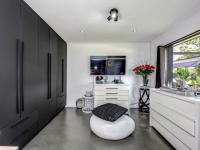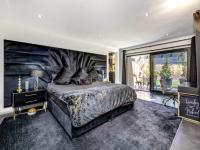 The formal lounge rises to double-volume height and is centred around a statement fireplace. Large openings connect this space seamlessly to the covered patio, where a built-in braai overlooks a truly impressive swimming pool and an expansive garden with rolling lawns, established trees and playground equipment offering both privacy and an exceptional family and outdoor lifestyle.