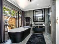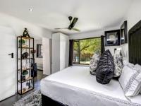 In the bedroom wing, the main bedroom suite is both luxurious and serene, featuring air-conditioning, sliding doors to a small private patio and garden, and an expansive dressing area. The en-suite bathroom is beautifully appointed with a freestanding bath, double shower, twin vanities and an adjoining make-up room.