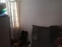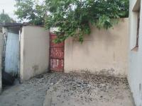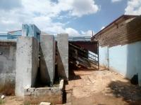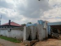 The exterior features a distinctive light blue facade, a flat roof, and a convenient carport, alongside an extensively paved outdoor area with patterned brickwork. While the property currently shows signs of wear and tear, including peeling paint and an unkempt perimeter wall, these elements underscore the potential for significant aesthetic and functional upgrades. Security is enhanced by a totally walled perimeter and an access gate, providing peace of mind within the community setting.