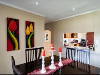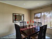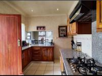 This charming 3-bedroom, 2-bathroom residence in Brackendowns, Alberton, offers a blend of comfortable living and practical features. The property presents a well-maintained exterior with a classic red tiled roof and a welcoming covered entrance, setting a pleasant first impression. Extensive parking is available with a double attached garage and an additional carport featuring a roller-door garage, accommodating up to four vehicles.