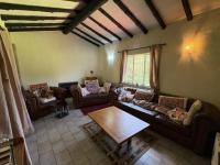 The lounge provides a relaxed setting, enhanced by a cozy fireplace for cooler evenings. Three well-sized bedrooms are positioned along a central passa