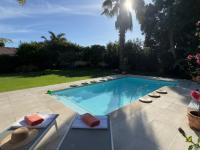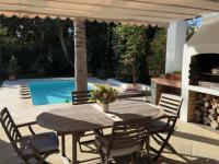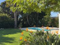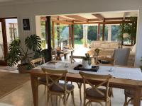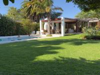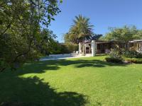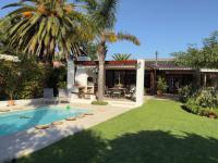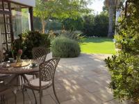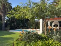 Accommodation is generous and well-appointed. The spacious guest bedroom is fitted with an air conditioner and opens directly to the garden. A second guest bedroom offers built-in cupboards, a built-in desk, and its own en-suite bathroom with a shower, basin, and toilet.