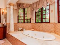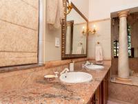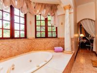 As you enter the double front door, you are greeted by a granite staircase, mirrored walls on the one side and a painted mural on the other. Up or down? The top level offers 2 bedrooms, a family bathroom, lounge with access to a balcony. The third bedroom, the master suite, also on this level, was made with luxurious living in mind, complete with fireplace, access to the balcony, separate dress room, and a bathroom designed for long lazy baths in the spa bath, or enjoying the steam room in the double shower. It also includes a double basin and separate [hidden];