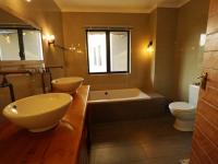 The well-appointed kitchen boasts ample cupboard space, quality finishes, and a separate scullery, making it both practical and stylish. Outside, the villa is completed by a sparkling pool, boma area, and landscaped garden – perfect for relaxed evenings under the African sky.