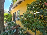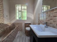 The main residence features four spacious bedrooms and two well-maintained bathrooms. A welcoming lounge with a warm fireplace creates a perfect space for family relaxation, while the stylish kitchen—complete with a gas stove and breakfast nook—connects effortlessly to a separate dining area. An entertainment room with a built-in bar makes hosting easy and enjoyable. Outside, a pristine swimming pool is set within a beautifully maintained garden, offering a serene countryside feel.