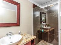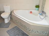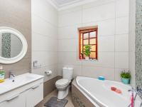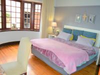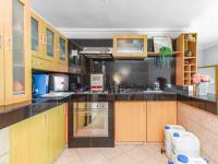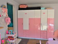 At the heart of the home lies a spacious kitchen, fitted with solid oak cupboards, granite countertops, an eye-level oven, and a breakfast bar perfect for casual dining. There is space for a double-door fridge, along with a separate scullery and an additional laundry room, ensuring functionality meets convenience.