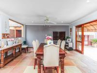 The backyard is designed for lifestyle living, offering a covered seating and braai area with a skylight, all overlooking a sparkling swimming pool perfect for relaxed weekends and hosting guests.