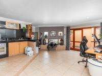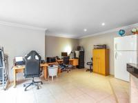 Flowing from the kitchen is a versatile, light-filled room currently used as an office, featuring large aluminium windows and stackable doors that invite the outdoors in. This space also includes a built-in braai, making it ideal for both work and entertaining.