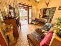 Step inside to a welcoming atmosphere featuring a large family lounge and a well-sized dining room, perfect for entertaining. The big family kitchen boasts ample cupboard space and a convenient built-in braai. Interior highlights include a dedicated study with a built-in bar, a "man's cave," and two modern bathrooms, one of which is en-suite. The three spacious bedrooms are equipped with built-in wardrobes, ensuring practical storage.