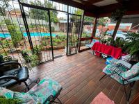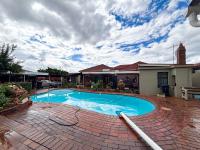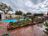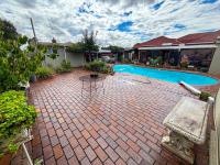A significant asset is the standalone one-bedroom flatlet, providing excellent rental income potential or space for extended family. Additional practical features include staff quarters, domestic rooms, and outside toilets, enhancing the property's versatility. Outdoors, a sparkling swimming pool awaits, surrounded by a lush garden adorned with fruit trees, creating a serene oasis.