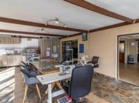 The spacious interior boasts built-in cupboards, a dedicated study, and a generous family dining area perfect for creating lasting memories. The real showstopper is the expansive entertainment area, ideal for hosting gatherings and alfresco dining. The grand entrance hall, complete with a beautiful skylight, sets the tone for the rest of the house. Three automated garages provide ample parking, while the paved pavements and motorised gate ensure easy and secure access. The pièce de résistance is the beautiful kitchen, equipped with two stoves - one gas, one electric - offering flexibility and convenience.