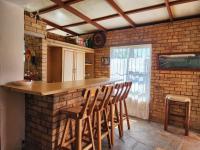 Flatlet 1; Tiled lounge and dining room area with a fireplace and a good size kitchen. Large bedroom with extra space for more beds, cupboards and a shower, toilet and basin. This unit has its own private back garden, ideal for someone with pets.