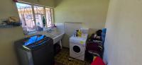 Laundry with double washbasin, Novilon flooring, and curtain rails