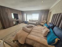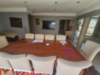 The home offers an abundance of living space, featuring two distinct lounges, two dining rooms, and a dedicated family TV room, providing versatile areas for relaxation and entertainment. Culinary enthusiasts will appreciate the two fully equipped kitchens, complete with a convenient scullery and a modern gas stove. The open-plan design, complemented by sliding doors, enhances the flow and natural light throughout the main living areas.