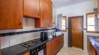 The kitchen offers ample cupboard space and is equipped with connections for both a washing machine and dishwasher, making everyday living convenient and efficient.