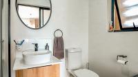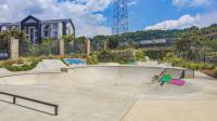 This luxurious 2 bed apartment is Situated on the second floor, with open plan living areas. The modern kitchen has caesar stone tops and includes an oven, a glass hob, washing machine, dishwasher and fridge. The dining room and lounge leads to a huge balcony fitted with a built-in braai