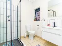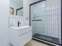 The unit features three generously sized bedrooms and two modern bathrooms. The main bedroom is exceptionally spacious, offering ample cupboard space. The en-suite bathroom is fitted with a shower, basin and toilet.