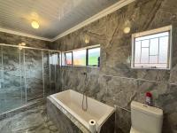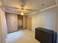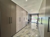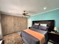 The main bedroom is your private sanctuary, featuring a tiled bedroom, a walk-in closet, and an en-suite bathroom with his and hers showers. It also boasts an additional private lounge area with sliding doors that open onto a tiled patio, offering scenic views of the back garden.