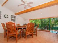 Step into the inviting lounge and dining room, perfect for hosting family gatherings and special occasions. For more casual family time, the separate family room, complete with a cozy fireplace, offers a warm retreat. This room seamlessly opens out to the patio, creating an ideal flow for indoor-outdoor living. The patio boasts a covered entertainment area that overlooks a sparkling, solar-heated swimming pool. Whether you're hosting a summer braai or enjoying a quiet evening by the pool, this space promises countless hours of enjoyment. The back garden is a haven for sports enthusiasts, featuring a cricket net that provides endless fun for all [hidden];