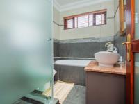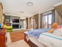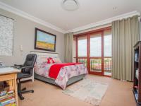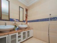 Accommodation is thoughtfully considered, with four en-suite bedrooms offering privacy and calm. The main suite stands apart — a private retreat complete with its own lounge and fireplace, creating a quiet space to unwind. The en-suite bathroom is finished to a high standard, with a soaking tub, walk-in shower, and refined finishes. A private balcony extends the space outdoors, overlooking the garden and pool below.
