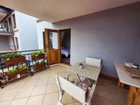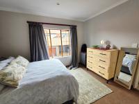 The interior features a well-designed layout maximising space and natural light. The property includes a functional kitchen and a comfortable lounge area, serving as the heart of the home. From here, residents access the patio, ideal for relaxation or entertaining, complete with a built-in braai. A convenient guest toilet adds practicality.