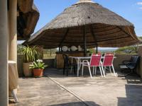 The property features a well-appointed main house comprising two bedrooms, two bathrooms, a comfortable living area, and an open-plan kitchen with TV room. This flows effortlessly to a private Lapa, making it ideal for entertaining or guest use. Additional features include a storeroom and double-shaded net parking.