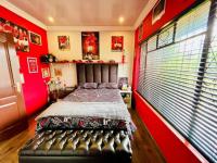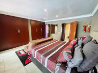 Bedroom 1: Laminated flooring, built-in cupboards, blinds, and air conditioning