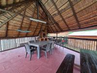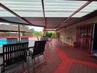 Step outside to a large patio/lapa area complete with a built-in braai, ideal for year-round entertaining. The outdoor space is further enhanced by a large solar-heated swimming pool, creating a perfect retreat for warm summer days.