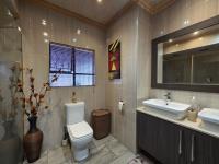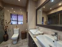 The property features three generously sized bedrooms, all fitted with built-in cupboards. The main bedroom is a true sanctuary, offering abundant cupboard space, air conditioning, and a private dressing room for added convenience. The home is complemented by three well-appointed bathrooms, ensuring comfort for both family and guests.