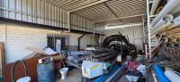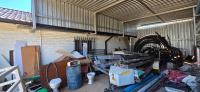 Large steel storage structure built on a solid steel frame with corrugated iron roofing.