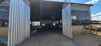 • Solid steel frame side opening doors with corrugated iron sheet covers.