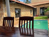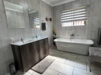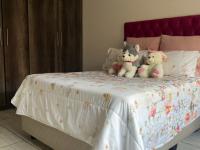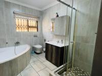 Accommodation comprises four generously proportioned bedrooms, each fitted with built-in cupboards, air conditioning, and TV connections. The master bedroom offers a private retreat, complete with a walk-in closet and a luxurious en-suite bathroom, while a second full bathroom serves