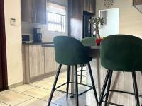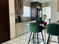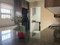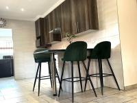 The kitchen is both stylish and functional, featuring elegant granite countertops, a breakfast bar, ample cabinetry, gas stove and a separate scullery and laundry area to ensure ease of living.