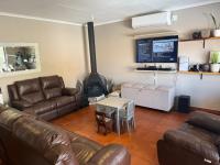 The interior features a functional layout, including a modern kitchen and a dedicated lounge area, providing ample space for relaxation and daily activities. One of the two bathrooms is an en-suite, offering added privacy and convenience. For year-round comfort, the home is equipped with air conditioning and a charming fireplace, creating a welcoming atmosphere in any [hidden];
