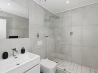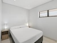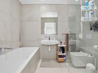 Accommodation is generous and well-appointed. The guest bedroom offers built-in cupboards and direct balcony access via sliding doors, while the second guest bedroom is tiled, fitted with built-in cupboards and blinds. A modern guest bathroom serves these rooms, complete with a large walk-in shower, basin and toilet.
