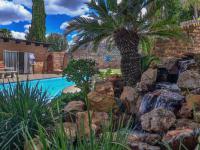 Main bedroom with sliding doors opening to the pool area, creating a tranquil private retreat