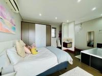The property boasts a well-appointed kitchen complete with a pantry, flowing seamlessly into a dedicated dining room and a comfortable lounge, perfect for everyday family life and entertaining. An additional family TV room provides extra space for relaxation. Enjoy the South African climate with both a private balcony and a patio, ideal for outdoor enjoyment. The established garden, complemented by an irrigation system and paving, offers a pleasant outdoor retreat.