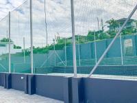 unique backyard feature. It has high netting to ensure the sporting balls are