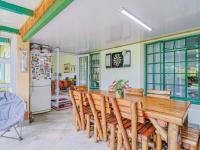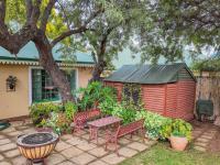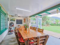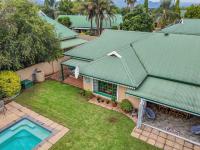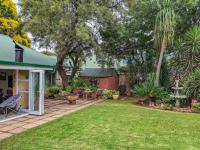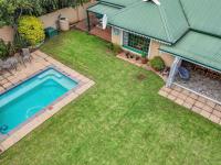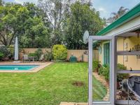 An enclosed patio with a built-in braai opens out to a lush garden with a swimming pool, perfect for relaxing weekends and entertaining.