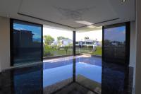 Step inside and experience every exquisite detail. Expansive open-plan living, designed for both effortless everyday living and exceptional entertaining. Sleek, ultra-modern kitchen, private scullery seamlessly connects to the formal lounge, informal lounge and elegant dining area. A masterpiece of entertainment complete with a built-in braai, sophisticated bar, and a striking designer wine and champagne display. The entire ground level stacks open to swimming pool and private waterfront garden set on the water’s edge. A luxurious ground-floor full bedroom suite perfectly positioned to capture the tranquil lake views.