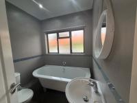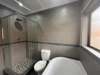 The apartment features 2 generously sized bedrooms, both fitted with built-in cupboards and large windows that invite in natural light. A sleek, full bathroom is beautifully finished with modern fittings, offering both a bath and shower for added convenience.