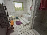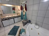 The home offers four well-sized bedrooms. Three bedrooms include built-in cupboards and additional space for a study or private lounge. The main bedroom is generously sized with ample cupboard space, air conditioning, and a full en-suite bathroom. A full guest bathroom serves the remaining bedrooms.