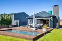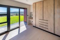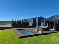 A stylish, newly built home with flair and varying levels of taste, has two luxury bedrooms, and two bathrooms (main en-suite). An open plan living room, dining room and kitchen area, have lovely high ceilings, creating a feeling of volume and space yet maintaining a sense of intimacy and warmth. No costs were spared with these visually rich and high-quality luxury finishes, curated with incredible attention to detail. The living area flows out onto a generous patio with folding, stacking doors, ideal for all year entertaining and relaxing with views over the majestic mountains, lush garden, and huge dam. Even a pool for those warm balmy Karoo summer days or a moonlight dip at night, under the mesmerizing starlit night sky.