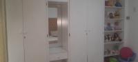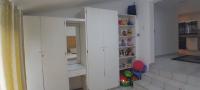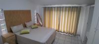 The living area is a spacious open plan area with an air conditioner. There are lots lots of cupboards in the kitchen, a gas hob and electric oven, breakfast nook and plumbing for a washing machine. A large bed will fit comfortably in the spacious bedroom, with lots of built in cupboards. The comfortable bathroom has a shower.
