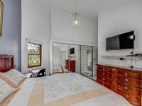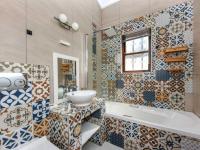 The spacious lounge and dining areas are designed for comfort, featuring a wood-burning fireplace, coal stove, and air-conditioning, perfect for every season. These living spaces overlook a neat, low-maintenance garden complete with a private jacuzzi, offering a tranquil retreat for sunny afternoons and quiet evenings.