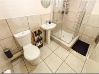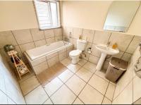 Discover this modern two-bedroom, two-bathroom townhouse, main bathroom with a shower, basin and toilet. the second bathroom with a bath basin and toilet. This charming residence offers comfortable living with prepaid electricity, a private patio, and garden. Enjoy peace of mind with 24-hour security, electric fencing, and one dedicated parking space, with ample extra parking for family and friends.
